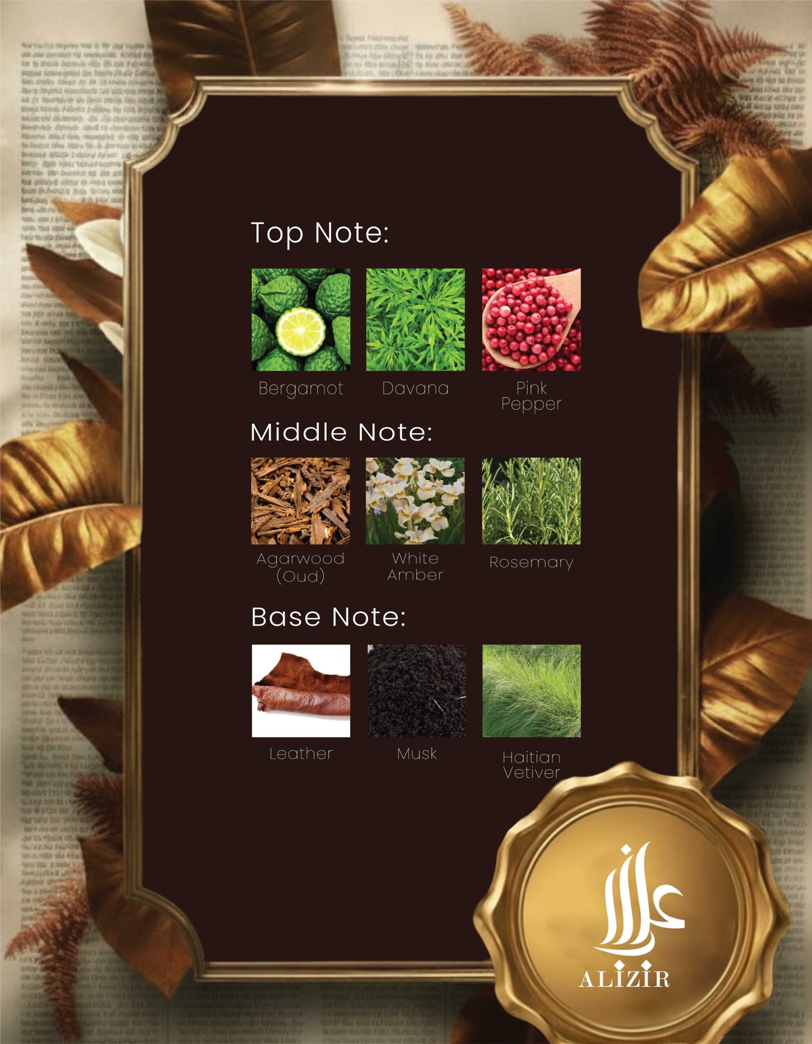 Heart Notes: (Oud) Agarwood, White Amber, Rosemary